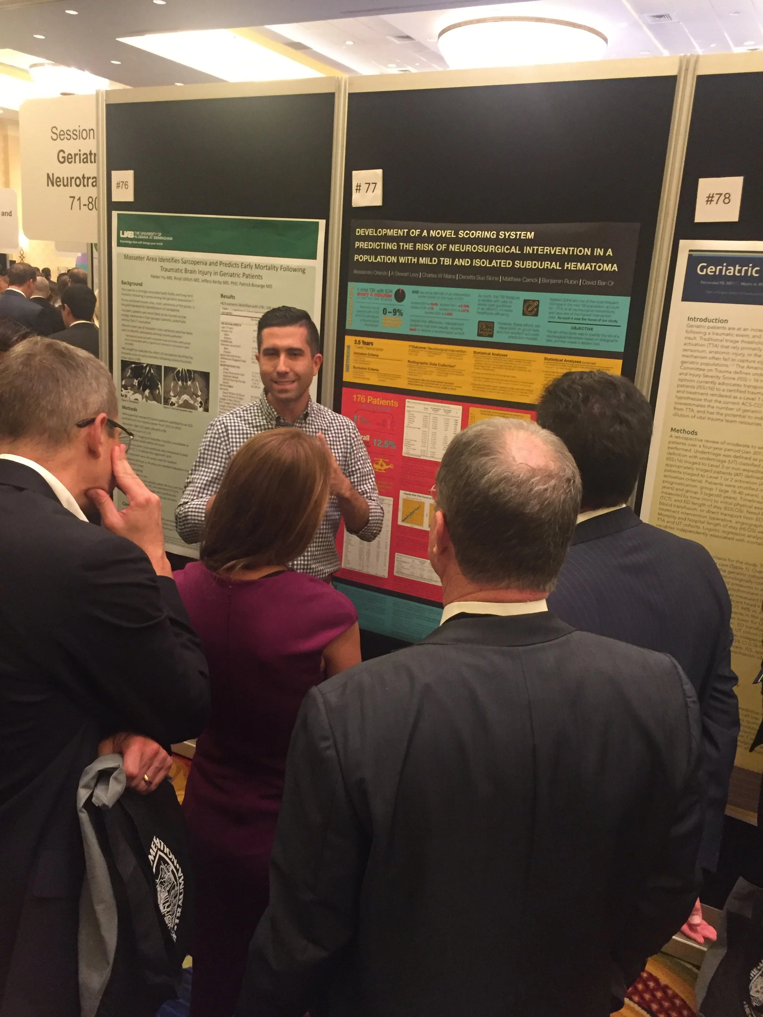 Dr. Alessandro Orlando presents his seminal work on neurosurgical intervention prediction tools at the 2017 AAST meeting in Baltimore, MD.